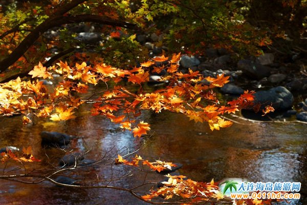 金海湖景區周圍有“四點一線”紅葉觀賞區:“四點”包括金海湖周圍、大溶洞周圍、丫髻山周圍及東高村滑雪場周圍;“一線”為昌金路峪口至金海湖。該紅葉觀賞區主要樹種為黃櫨、元寶楓、火炬等。在金海湖的西面,修建有一個長達1500米、寬8米、高20米的大壩,大壩上還修建有一個仿古長廊,不管是烈日當空,還是細雨濛濛,都能給人們最好的角度來觀看高峽平湖碧波蕩漾的美景。現在景區還在營業的水上項目有快艇和大游輪,游客們可以乘坐游船徜徉在金海湖上,整個景區的紅葉一覽無余。