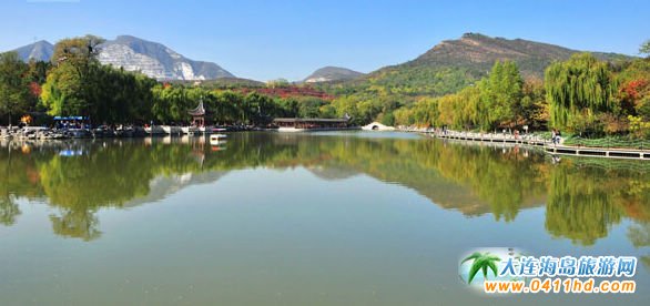 “小江南”是整個公園里人氣最旺的地方。延著木橋蜿蜒而行,波光粼粼的湖面兩邊,排排垂柳迎風搖曳。山坡上紅色的元寶楓、黃櫨,黃色的金葉榆、銀杏,紫色的紫葉李,讓游客們目不暇接。走累了,還可以在長廊上、亭子里休息一下,看看湖水中嬉戲的野鴨,也是別有一番樂趣。