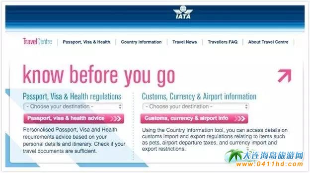 推薦小伙伴們在出境前,可查詢IATA國際航空運輸協會官網(查詢網址:http://www.iatatravelcentre.com/),在頁面上只要輸入目的國、入境逗留時間、以及你的護照簽發時間等信息,就可以查看你的護照、簽證等必要材料是否依然有效。