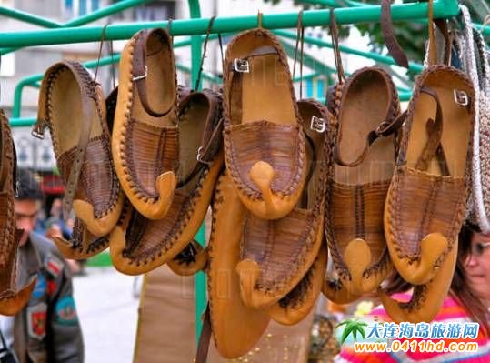 如各式的手工制作的皮鞋;勾針編織的沙發、桌子等家用飾品;用面粉做的心形吉祥物掛件,用核桃殼雕刻的工藝品;陶瓷做的工藝品。