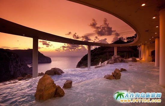 伊比沙島以所謂的“Cascadas Suspendidas”獨特水療體驗而為自己的特色,這種戶外海水浴療法電路池是專門為Hacienda Na Xamena酒店建造的,這個水療池有助于放松和使身體恢復活力。全身按摩可以緩解疾病,如肌肉緊張和血液循環不暢。而這個水療中心最獨特之處即每個池子 都為游客提供一覽無余的海景。