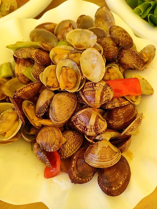 1、當(dāng)?shù)睾ur:生拌野生海參、煮紅里螺、巴蛸蘸辣根、辣炒蜆子、花蓋蟹、梭魚燉粉條、家燜雜拌魚、大蝦娃娃菜等;