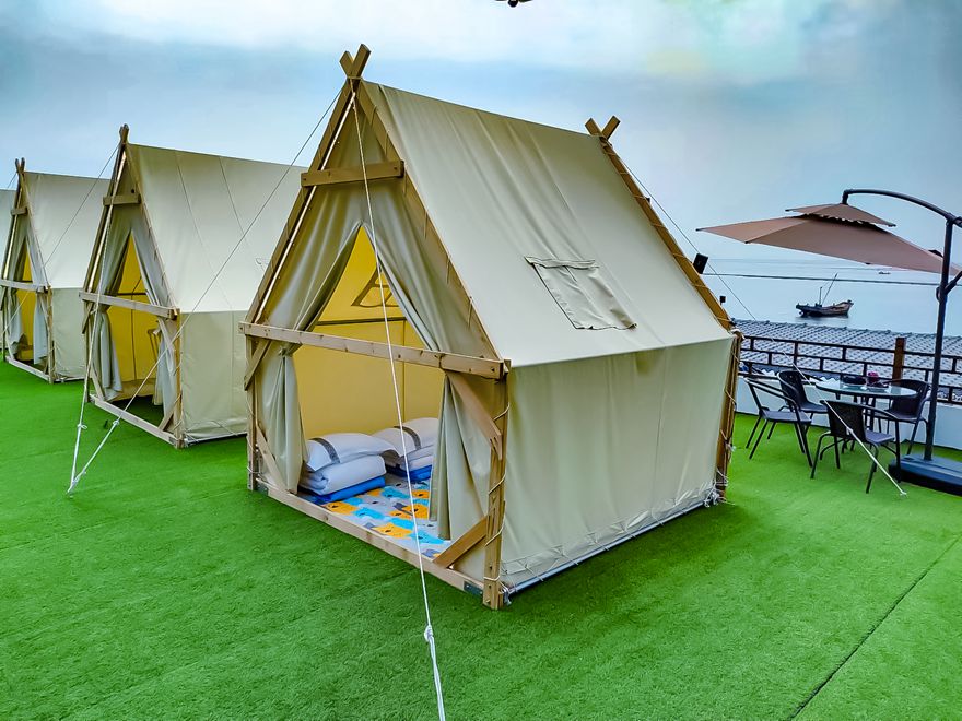 更為驚艷的是,度假村在露臺上搭建了10頂海景無敵的輕奢帳篷,住在帳篷中,感受海風(fēng),傾聽海浪,看潮起潮落.....