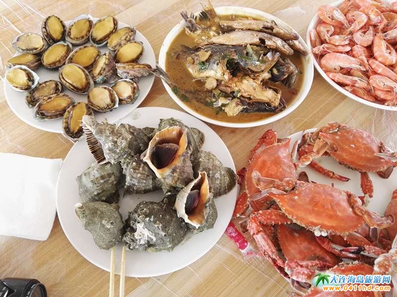 長?h哈仙島哈哈旺度假村餐飲:以島上海鮮為主,皮口海鮮為輔,十菜一湯(六海鮮),十人一桌。聘請有多年海島漁家工作經驗的師傅,為您做出地道的漁家美味。價格較貴的螃蟹、蝦爬、海螺、大蝦等為必上海鮮。扇貝、海蠣子(生蠔)、炸魚、海紅、蜆子等海鮮吃完就添。為了保護游客飲食質量,鄭重聲明:六道海鮮全為活鮮,午餐與晚餐海鮮不重樣。