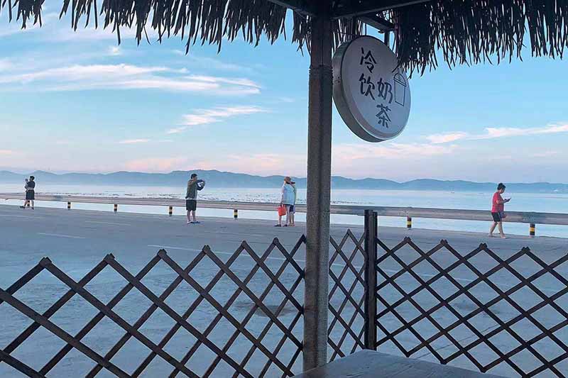 哈仙島影藝漁村不足五米是北海浴場,快艇,飛魚,香蕉船等游樂設施。前門冷飲休閑吧,東南亞稻草屋實木風格,面對大海吃小吃,和冷飲,價格實惠,拍照圣地,請準備好沙灘長裙。喜歡熱鬧的你,可參加晚上篝火晚會,沙灘燒烤,獨具特色的海邊免費卡拉ok;喜歡安靜的你,晚餐過后,踏著夕陽,赤腳漫步沙灘,豈不悠哉。餐后免費娛樂項目包括卡啦ok,岸釣、趕海、洗海澡、麻將、劇本殺等桌游