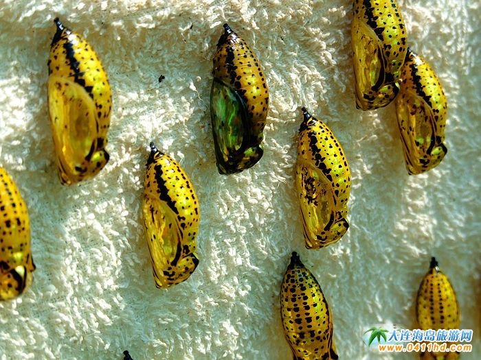 中,看到剛剛即將要羽化成蝴蝶的臺灣大帛蝴蝶蛹,盡管沒有蝴蝶那樣的嫵媚,但是其金燦燦的外表也足以驚艷無比,這也是蝴蝶生命中的一個璀璨的過程。