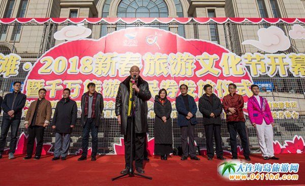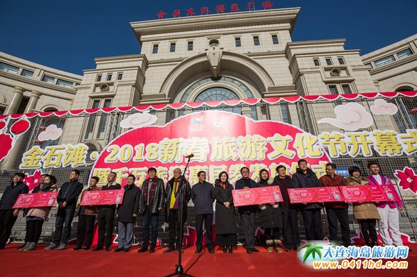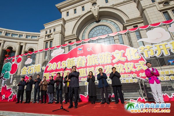 2018年1月1日,在喧天的鑼鼓、喜慶、熱鬧的的民俗表演中,金石灘·2018新春旅游文化節(jié)開幕式暨千萬旅游惠民券發(fā)放儀式在金石灘文化博覽廣場啟幕。金普新區(qū)黨工委委員、管委會副主任、金石灘國家旅游度假區(qū)管委會主任尚書臣等領(lǐng)導(dǎo)與陳寒柏、遲尚斌、張嘉樹等我市文化名人共同出席,并為舞獅點睛,寓意讓文化點亮冬季旅游,實現(xiàn)度假區(qū)旅游全季節(jié)、國際化、樹品牌的新突破。活動當(dāng)天,800名來自大連市內(nèi)各社區(qū)的居民免費乘坐快軌開年包列來到活動現(xiàn)場,與金普新區(qū)各社區(qū)居民及高校學(xué)生,共計1500余人,手持金石灘新春旅游惠民券,以冬季文化之旅的方式,共度2018年的第一天,拉開了金石灘·2018新春旅游文化節(jié)及冬季旅游惠民季的帷幕。