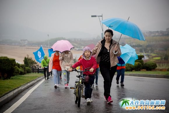 海鮮大排檔——黃金海岸東部浴場——國賓樓——觀景臺——西部沙灘汽車露營地,并分別在國賓樓和西部沙灘汽車露營地設立了4公里和8公里折返點。來賓們徒步興致高漲,絲毫未被小雨干擾。帶兒偕老,每個人臉上洋溢著快樂的笑容。