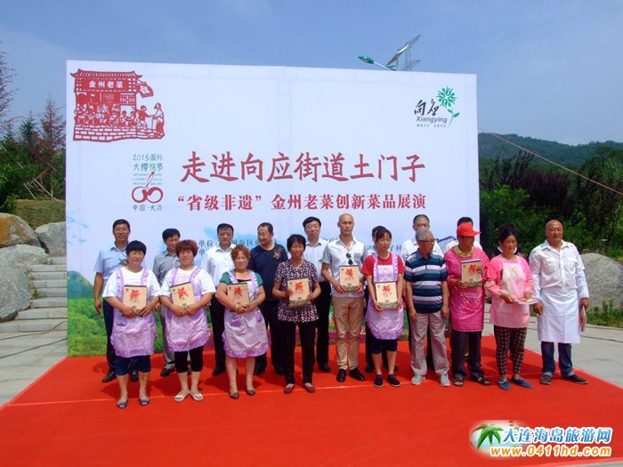 金州新區(qū)旅游局、向應(yīng)街道、美食文化協(xié)會在2015大連國際大櫻桃節(jié)期間舉辦走進土門子農(nóng)家游一條街“省級非物質(zhì)文化遺產(chǎn)”金州老菜創(chuàng)新菜品展演活動。