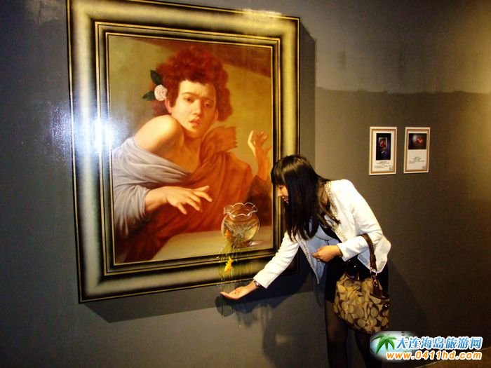 大連金石灘奇幻藝術體驗館以老蠟像館為原址,建筑面積2600多平方米,由15位世界知名的韓國三維立體畫家歷經一年的策劃和設計,用時半年手繪所完成的150余幅奇幻藝術油畫作品,構成名畫館、生活錯覺館、希臘羅馬埃及館、恐龍動物海洋館、中國館、世界館、韓國館等七大奇幻場館,是東北地區最具代表性的旅游創意文化體驗館。