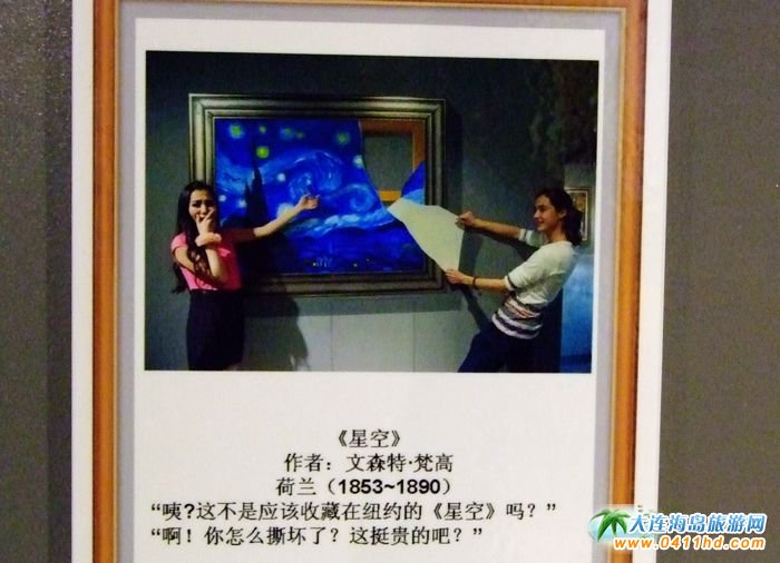 大連金石灘奇幻藝術體驗館以老蠟像館為原址,建筑面積2600多平方米,由15位世界知名的韓國三維立體畫家歷經(jīng)一年的策劃和設計,用時半年手繪所完成的150余幅奇幻藝術油畫作品,構成名畫館、生活錯覺館、希臘羅馬埃及館、恐龍動物海洋館、中國館、世界館、韓國館等七大奇幻場館,是東北地區(qū)最具代表性的旅游創(chuàng)意文化體驗館。