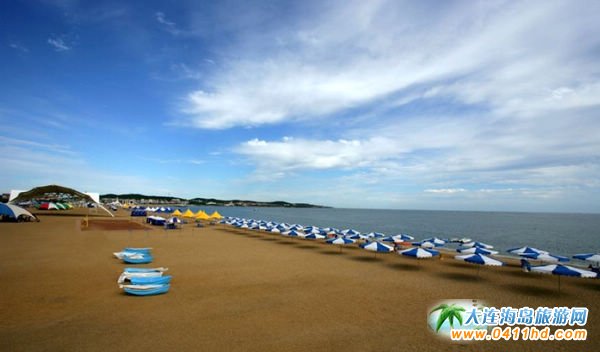 大連金石灘浴場是國內第一個全部使用防紫外線設施的健康型海濱浴場,上千個沙灘涼亭、帳篷、陽傘或是用無污染的草做頂篷,或用防太陽黑子材料。