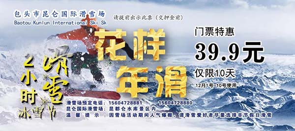 12月1起包頭昆侖國際滑雪場推出門票39月特價