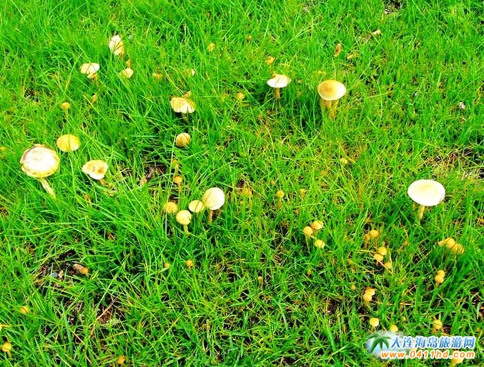 春天的大連,處處春意盎然鳥語花香;5月的濱海路,鮮花嬌艷綠草芬芳。一場不經意的春雨,在猶如綠毯上的草地上,一些嬌嫩可愛的小蘑菇,爭先恐后的破土而出,夾雜在綠草中蘑菇,顏色金黃,一個個仿若剛剛出爐的小小面包。