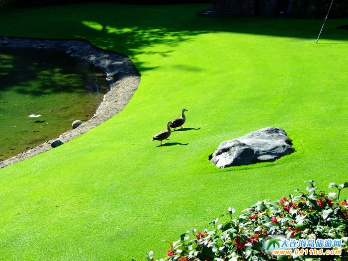 更有意思的是,盡然能看到野鴨子大搖大擺的在地毯一樣的草坪上悠閑的散步。
