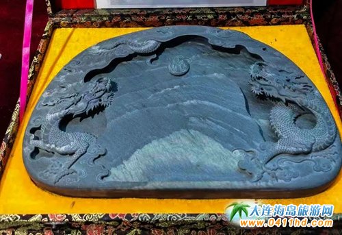 砣磯島開采的石料石色青黑,質地堅硬,溫潤細膩,金星閃爍,雪浪翻涌,名曰“金星雪浪石”。經能工巧匠加工細作,成為硯臺,歷來受到文人墨客的賞識,是歷代地方官使敬獻皇帝的貢品。