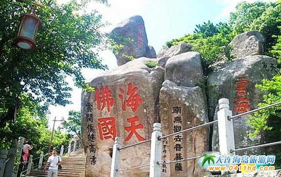 在香云路中段的拐灣處,有方形巨巖矗立路側,巖面“海天佛國”四個大字出自明代抗倭名將候繼光手筆。每個字約一米見方,它十分貼切地概括了普陀風光的特點,后來便成了普陀山的代稱。在海天佛國崖上又疊一石,高插云海,險而且玄,石上刻著“云扶石”三字。石上有一小潭,如碗若缽,承受天露,日積月累,清冽不腐。從上海到普陀山佛頂山旅游價格根據交通方式不同可以自由選擇。
