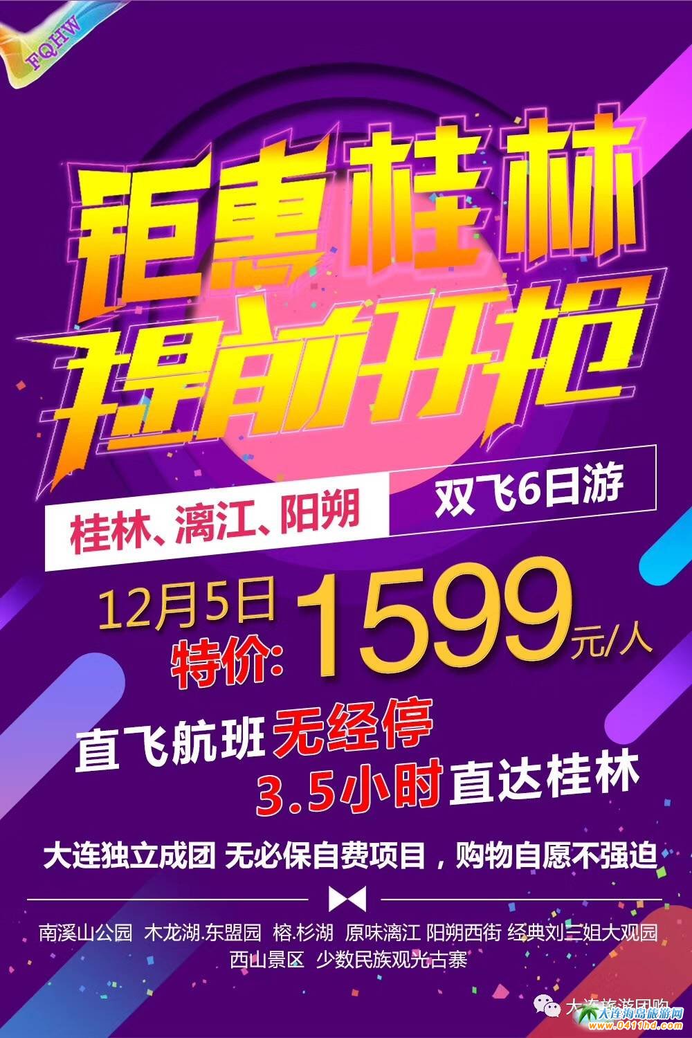 2017年大連到桂林,云南,泰國,四川的特價團,2017年12月份的特價團