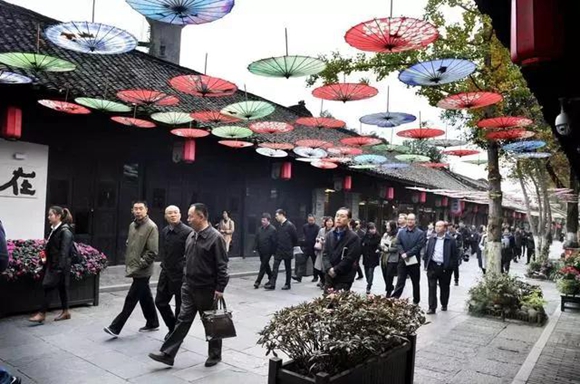參會代表現(xiàn)場考察了正在創(chuàng)建國家5A級旅游景區(qū)的安仁古鎮(zhèn),聽取了安仁古鎮(zhèn)規(guī)劃館的介紹。考察了《今時今日安仁》實境演繹綜合體、參觀了中國第一家融“閱讀+美學(xué)+住宿+社交”為一體的復(fù)合文旅業(yè)態(tài)方知書房、了解了致力于打造西部文創(chuàng)產(chǎn)業(yè)孵化基地的安仁華僑城創(chuàng)意文化園、還考察了打造“園藝花卉+特色產(chǎn)業(yè)+旅游”復(fù)合型新型旅游項目的錦繡安仁現(xiàn)代農(nóng)業(yè)花卉博覽園等項目和業(yè)態(tài)。安仁古鎮(zhèn)文博文創(chuàng)文旅“三文”融合發(fā)展的模式給代表們留下了深刻印象。
