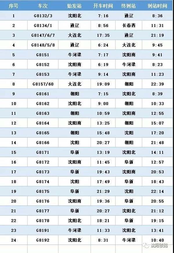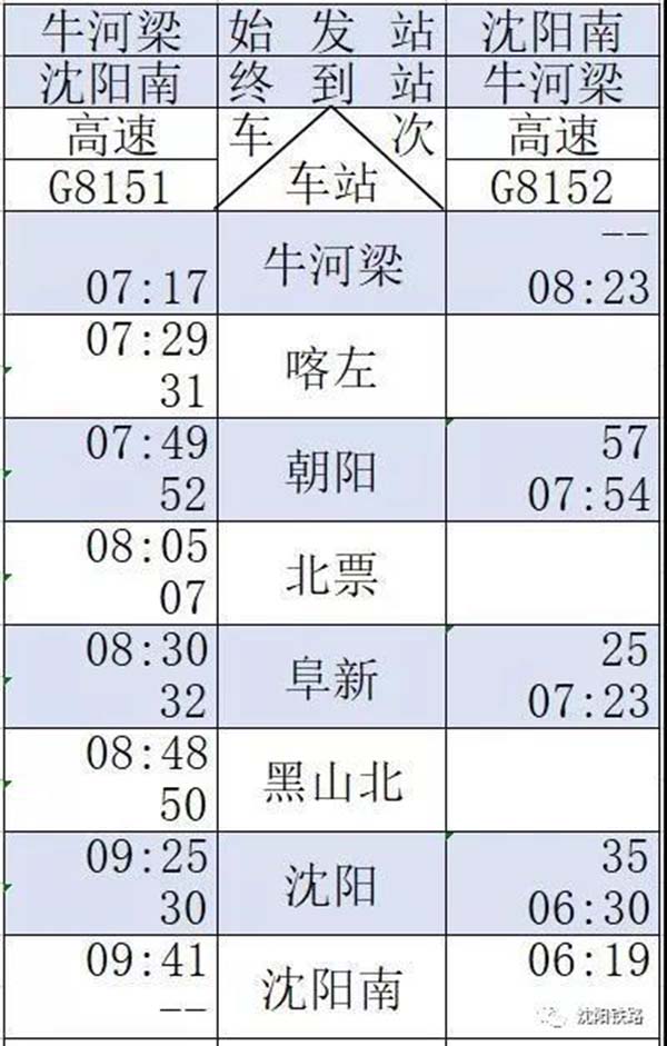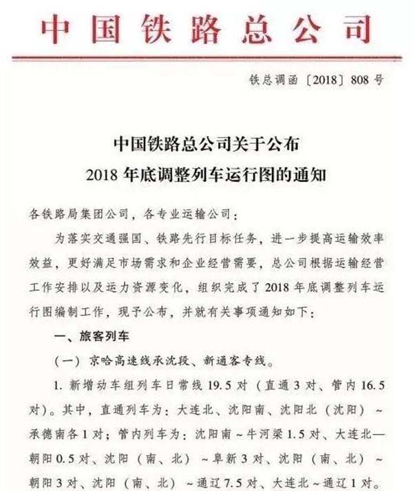 時代在提速,生活在提速,北京到沈陽當然也要提速。據了解,京沈高鐵即將開通,沈陽到朝陽、沈陽到阜新、沈陽到通遼等地的高鐵時刻表正式發布,將于2019年1月5號正式調整實施。