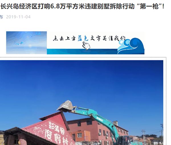 "11月4日上午,長興島經(jīng)濟(jì)區(qū)成立由行政執(zhí)法、公安、國土、街道等多部門和單位組成的聯(lián)合行動組,對交流島街道范圍內(nèi)的違建別墅展開拆除行動,打響6.8萬平方米違建別墅拆除行動“第一槍”!"這就是變化的原因!