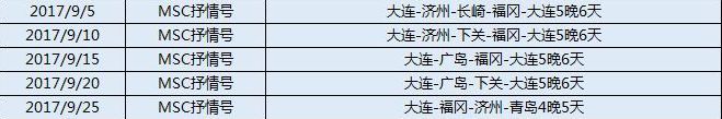 2017年在大連港出發(fā)的地中海郵輪抒情號出發(fā)航次時間,有意向出發(fā)的朋友們趕緊記一下,好好安排好家人的出行時間哦~