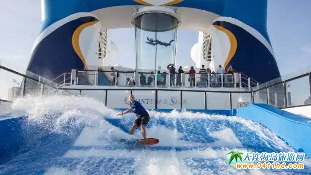 海洋量子號還有個游樂項目,尤為經典,那就是“甲板沖浪”,喜歡沖浪的朋友們可以盡情的去體驗,但是小編建議沖浪的女生選擇穿連體式泳衣,不然水速太快容易把用于沖掉。