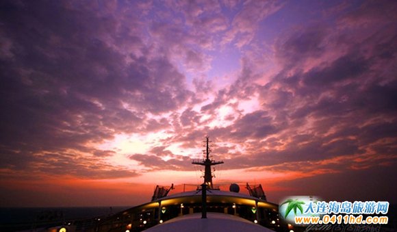 披上件外套,穿過安靜的艙房走廊,來到甲板上,準備好你的鏡頭,調好最適合的角度。靜靜的等待,等待……此時的你會發現:除了遠處漸漸暈染開的朝霞,其余的一切仿佛都是靜止的。你甚至可以清楚的聽到陽光扒拉云朵的聲音,海風就這么輕輕吹著,你也就這樣癡癡的看著。