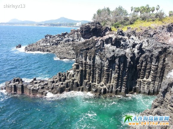 由火山爆發形成的著名景點——柱狀節理帶,是不可不看的美景。欣賞著繁茂的各色植物,沿木條鋪設的棧道前行,海浪的拍打聲越來越響。等走到觀景臺的時候,瞬間會被大自然打造出的奇妙景象驚呆,這是火山噴發的巖漿,流入海中急速冷卻而產生的奇景。多角形的垂直狀節理一排排矗立在海岸邊,當海水拍打上去,在節理上停留了一小段時間的海水又如同瀑布般傾瀉而下,十分壯觀。