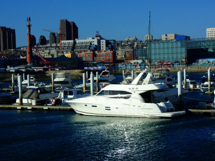 大連星海灣游艇碼頭目前可停泊游艇200艘。目前是大連最大的游艇?看a頭。