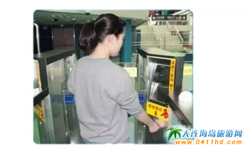 然后,離開入口,走到出口前,將辦護照時留取指紋的手指(一般為右手大拇指)壓在指紋采集設備上,并注視鏡頭。