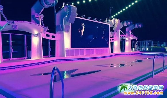 白天體驗了一天的探險項目,晚上看完星座劇院的演出,可以來到甲板上,看一場海上露天電影也是不錯的選擇~